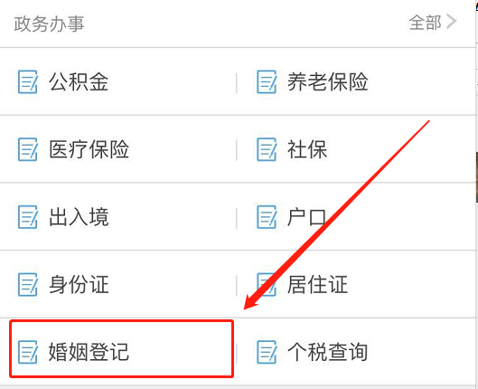 (2)在“政务办事”里找到“婚姻登记”一栏。