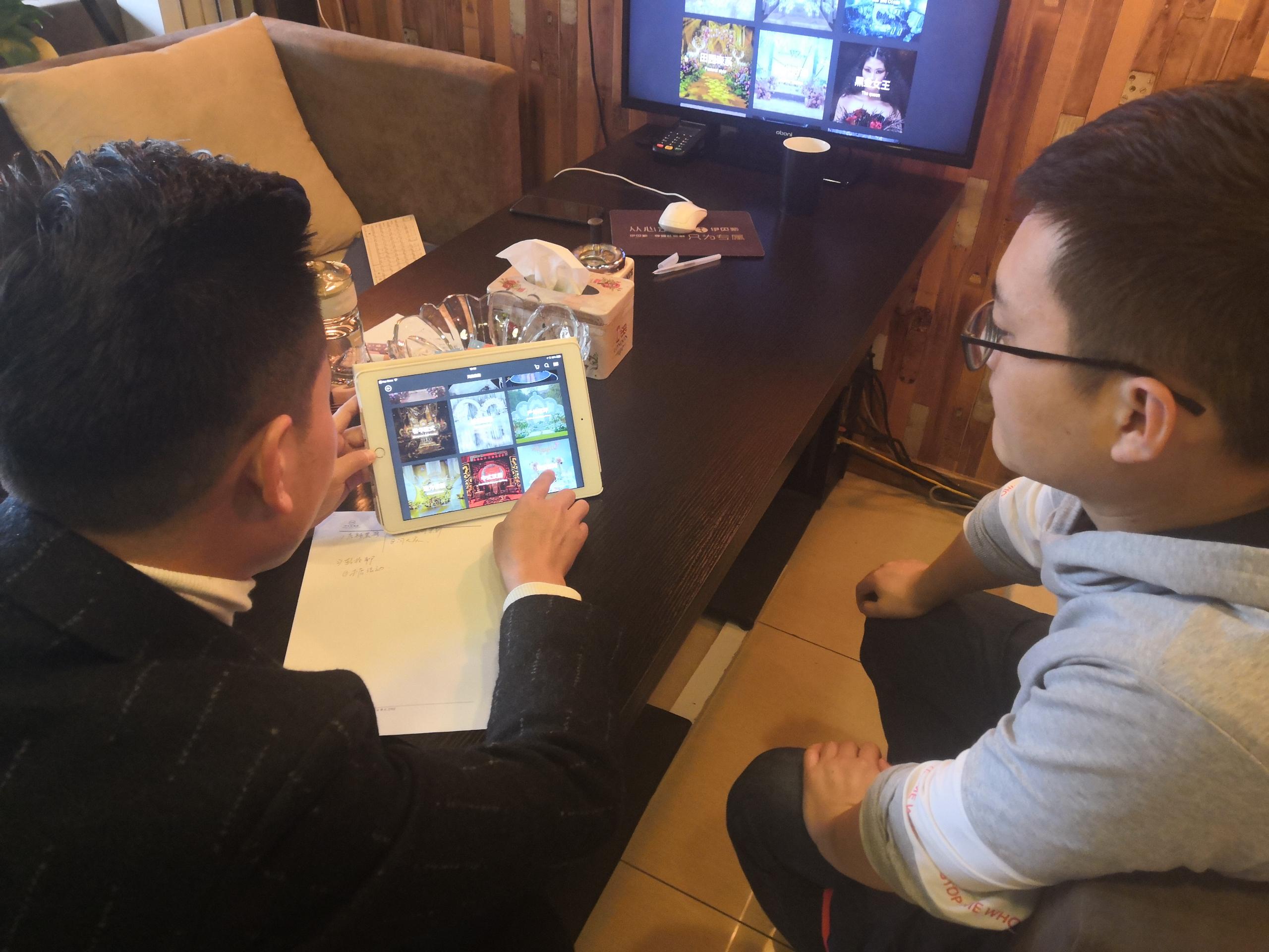 刚入驻的时候,我们就向婚礼纪提出需要一款现代化的展示系统。在我们看来,这是婚庆行业必需的工具。因为每次有客照更新,只能用U盘同步到所有人,真的很麻烦;手机屏幕就那么点大,总觉得缺少点效果。