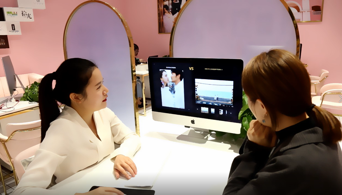 作为一家年轻个性化的摄影工作室,我们希望每一对新人都能感受到我们的认真和力量。水镜的出现,完美填补我们在门店展示方面的空缺。