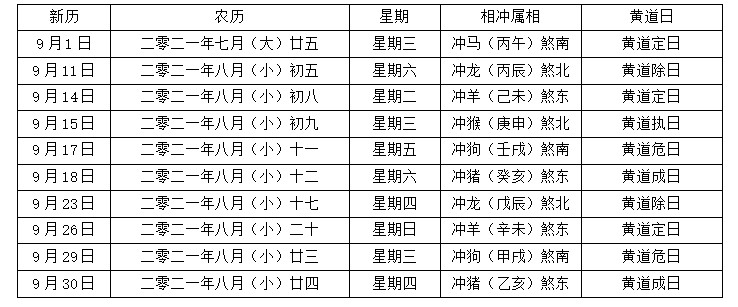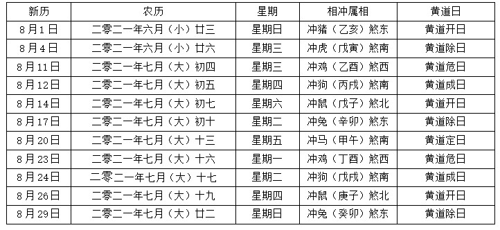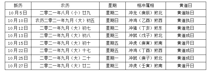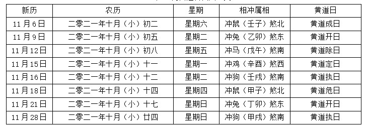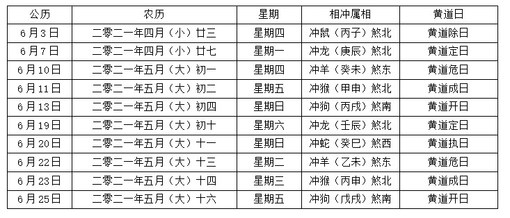 2021年4月到12月中还有许多适合结婚的黄道吉日,可以参考以下表格。